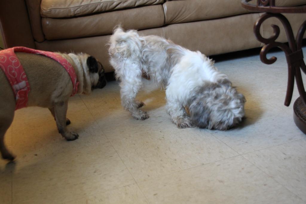 Anyway, little sister came over to escort SOJO back to his palace but he just wanted to continue to explore the Pug Palace.